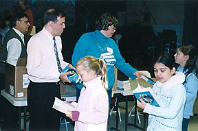 | OCTOBER 2009 -- On Friday, Oct. 1, members of the Redding Grange handed out dictionaries to third graders at Redding Elementary School as part of its support for The Dictionary Project, a component of the Word for Thirds program.