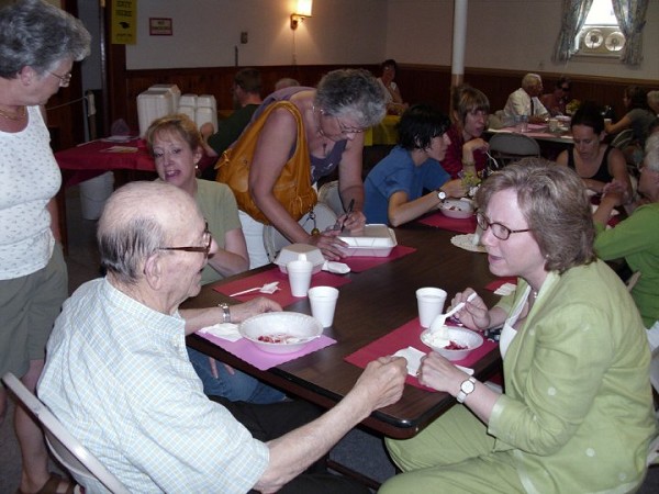 The day was slightly dampened by a downpour in the middle of the afternoon. Unfortunately, it struck at a time when the line was stretching from the serving table all the way up the stairs, out the front door and down the walk in front of the Grange Hall. But appetites weren't dampened as attendees enjoyed some of the largest servings of strawberry shortcake in the county.