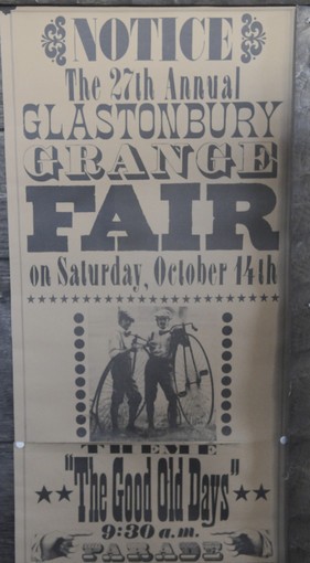 In the foyer, an old, framed Grange Fair poster leans against a wall. Glass cases house faded sashes, officer's badges and a Hartford Courant front page from 1960, touting the organization's 75th anniversary.